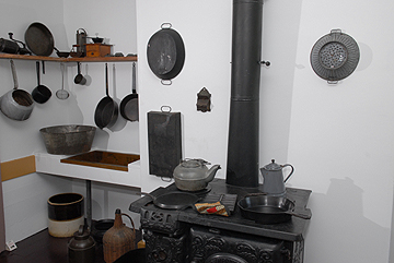 Upstairs, in the master bedroom (so called because, unlike today, only the “master” slept there), try to picture the over six-foot Douglass in a bed only slightly larger than 5 feet. This required sleeping somewhat upright, akin to what a reading-in-bed position is now. Next to the bed stands the de rigueur chamber pot. Despite its function, I was very impressed with its elegant, intricate design ringed with gold trim.