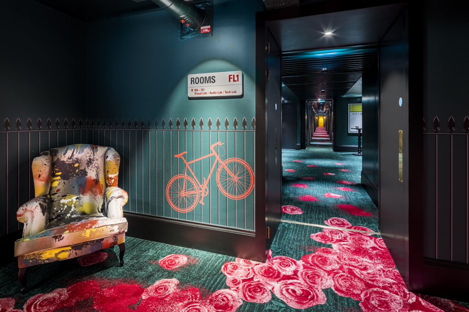 Located in a district marked by an industrial past and a technological future (think Silicon Valley, but across The Pond, in a nabe that is a mix of art and tech galleries, artsy and dot-com businesses, and a bustling gentrification of industrial areas), the nhow embraces traditional design touchstones, metabolizing them with gusto and regurgitating them in an unconventional and disruptive way. Here, tradition and innovation collide.