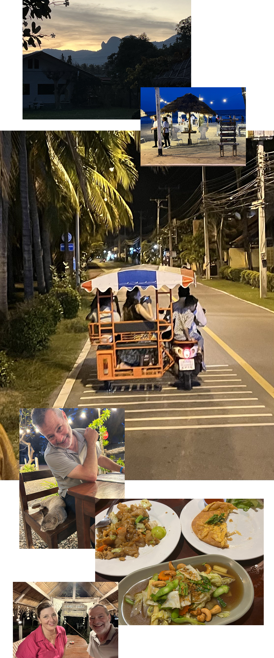 The weather was balmy. Unlike the big cities like Bangkok, the coastal compound we stayed in was clean, secure, orderly, and beautiful. Beyond our serene retreat, Thailand offers an incredible array of attractions that make it a dream destination for travelers. From the bustling streets of Bangkok, home to iconic sites like the Grand Palace and the Reclining Buddha at Wat Pho, to the northern charm of Chiang Mai with its ancient temples and vibrant night markets, the country blends rich history and modern energy. Nature lovers can explore stunning national parks like Khao Sok, where lush rainforests, waterfalls, and wildlife await, or island-hop along the Andaman Sea to pristine beaches in Phuket, Krabi, or Koh Samui for scuba diving, snorkeling, and crystal-clear waters. Cultural experiences abound, such as visiting historical ruins in Ayutthaya or joining lively festivals that showcase Thai traditions.