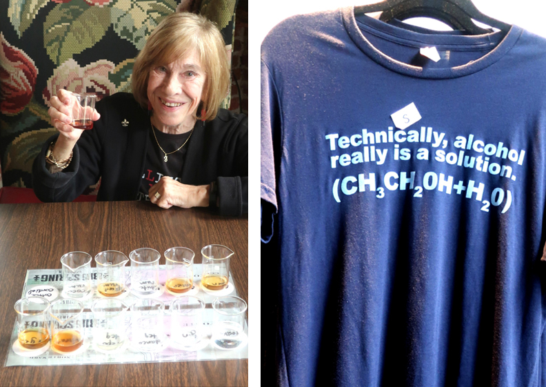 A wide variety of unusual tasting flights as well as clever shirts and posters add to the fun vibe at at Big Spring Spirits, PA. Photo by Victor Block.