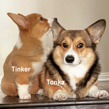 Tonka and Tinker, our two Corgis, were playing outside in their dog pen and they were having so much fun. I decided to let them play while I went inside to do some work on the computer. After some time, I opened the door and they rushed inside. But just before I shut the door, I noticed there was a dog tail laying outside. A dog tail?! It looked like Tonka’s dog tail! I looked inside and I noticed Tonka’s butt was tailless and his butt bones were sticking out. But wait! His coat was lighter than normal. Tonka was thinner. Hey, that isn’t Tonka! That’s another dog! Somebody stole Tonka!! Who? What? When?!?!