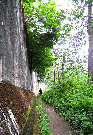 Besides being emotionally assaulted by recent evidence of hungry bears (so desperately hungry, in fact, that they will strip the bark off a pine tree like a banana peel to get to two or three tiny insects); another amazing thing you'll notice about the Iron Goat are the massive concrete retaining walls that consistently line the trail, nearly from start to finish. These structures are so ancient and impressive they give you the feeling you're a WWII spy, sneaking up on an impenetrable Nazi-inspired St. Nazaire or Soviet Murmansk-era submarine base. So enormous and frequent are these monstrous concrete retaining walls, it's hard to imagine how a corporation, especially one from the turn of the last century, could have made such a rail venture financially feasible with the massive amounts of capital they would have had to be expend on such a herculean construction endeavor. Totally amazing.