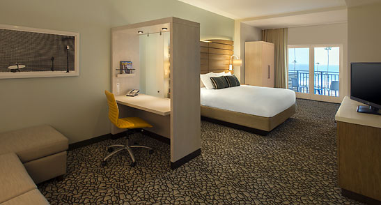 SpringHill Suites by Marriott just opened in February, and I've got to tell you, this is a real bargain for being by the ocean. This stylish surf inspired retreat offers a coastal casual vibe. The rooms are finely appointed with a beachy decor, and modern amenities that discerning travelers expect.